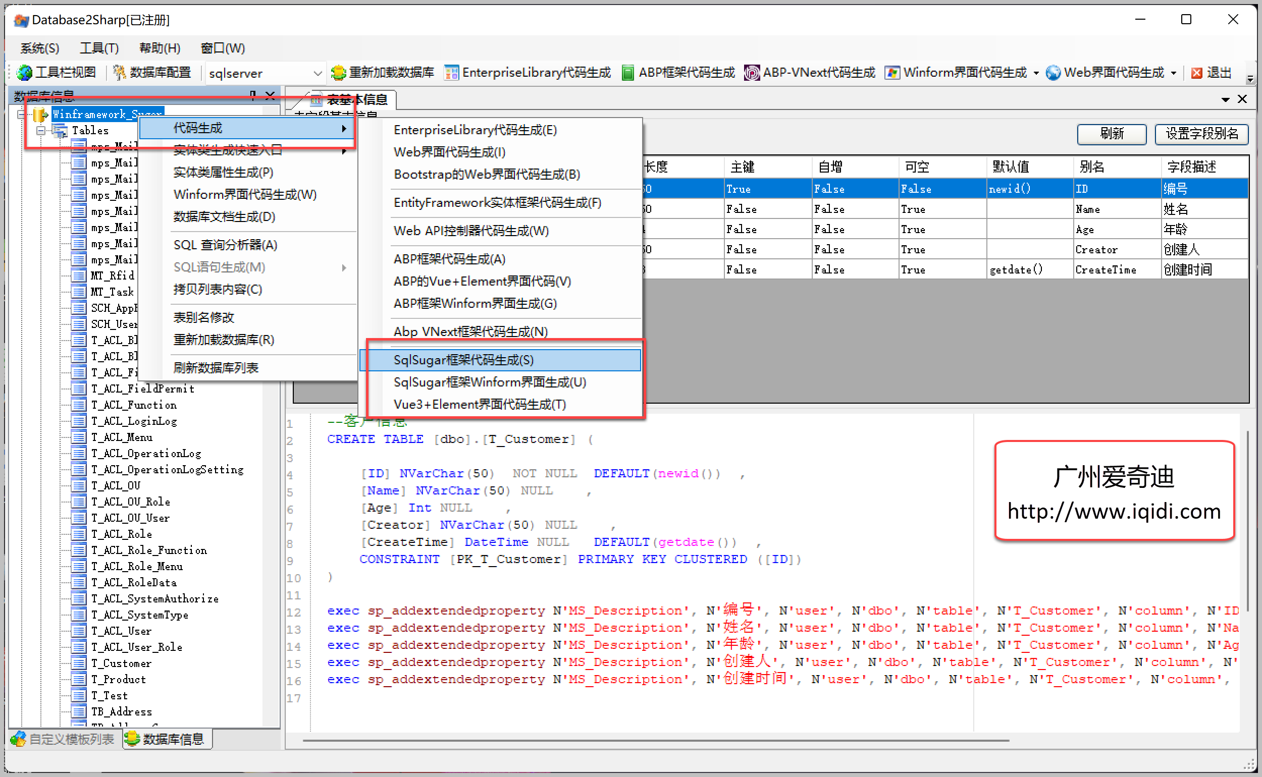 根据这些界面组成的规则,我们可以进行数据库的相关信息进行选择,在代码生成工具上进行定制快速生成,从而可以极大提高开发效率。