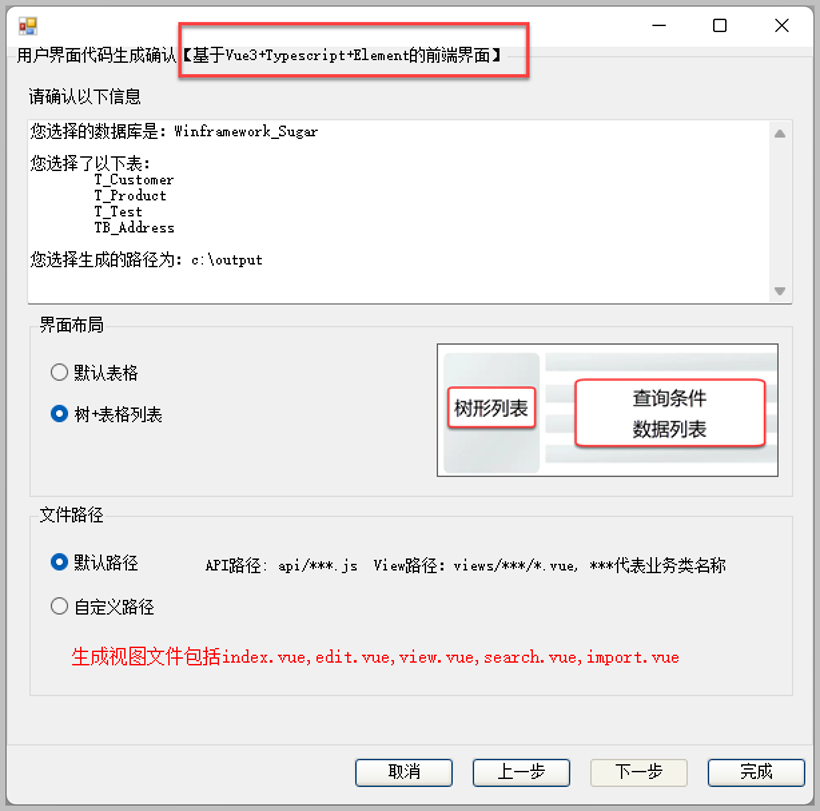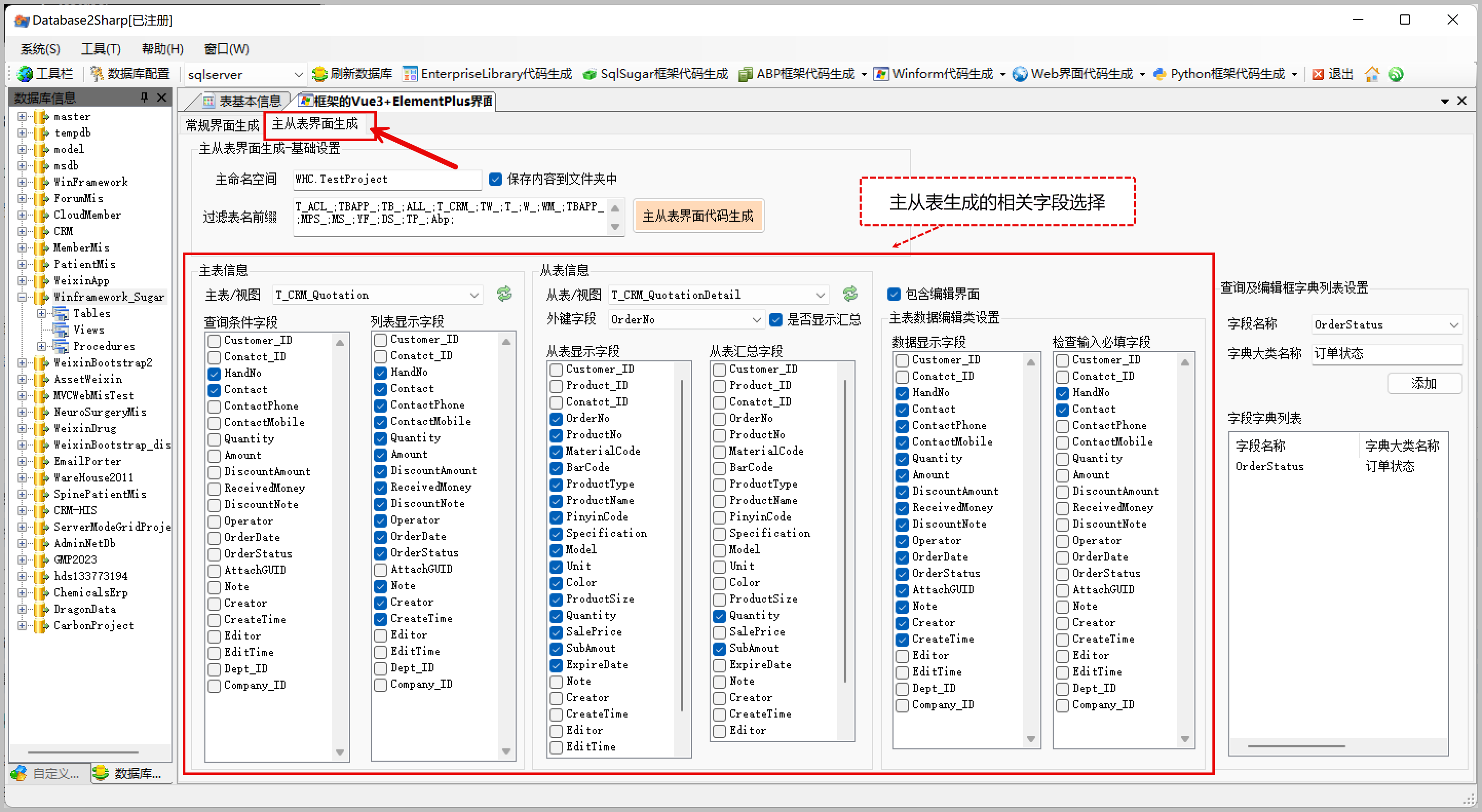 以上就是我们对于常规的单表和主从表在Vue3+ElementPlus+TS的BS端框架里面,我们定制化界面元素的生成界面的处理过程。