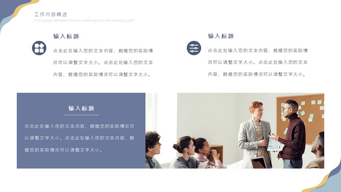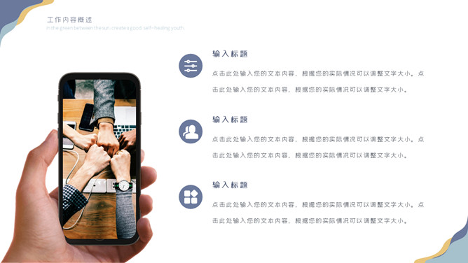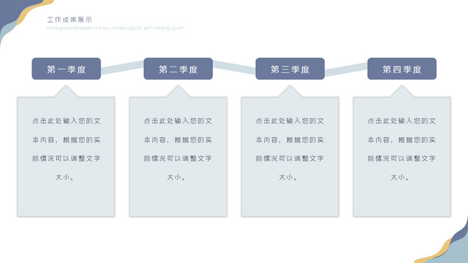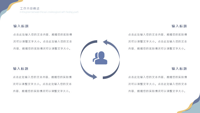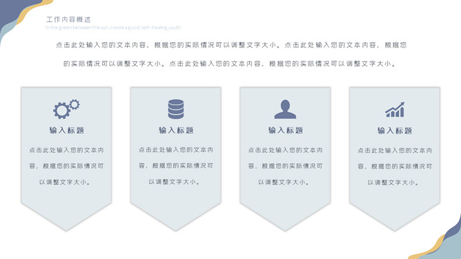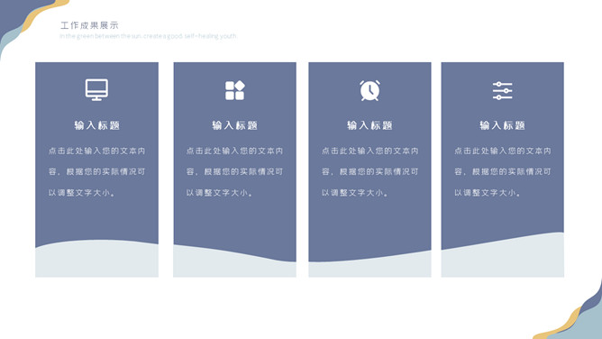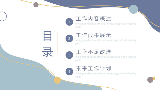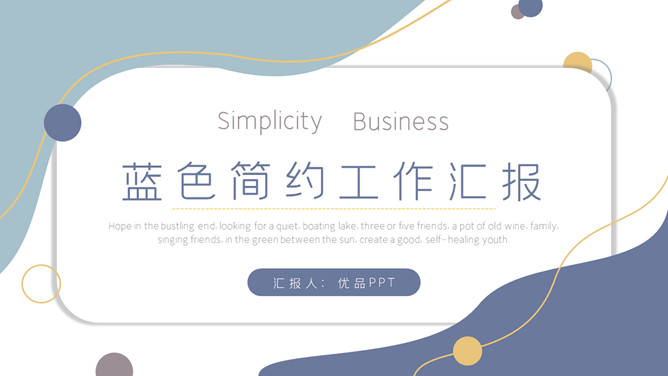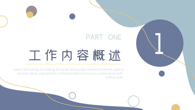 动感曲线工作汇报PPT模板。一套工作总结汇报幻灯片模板,简约设计,淡雅蓝色主色调,动感波纹背景。