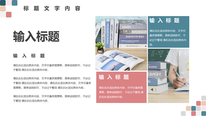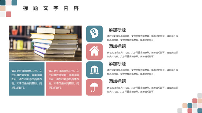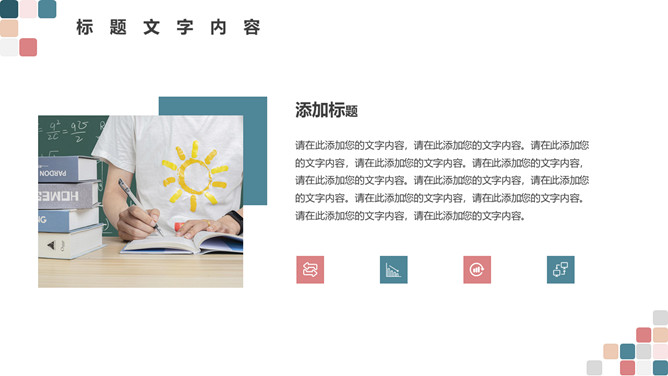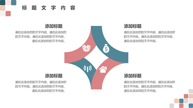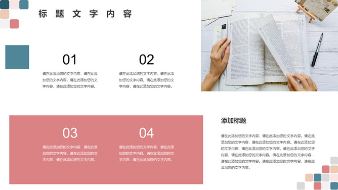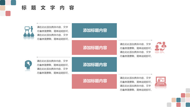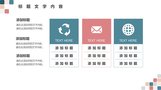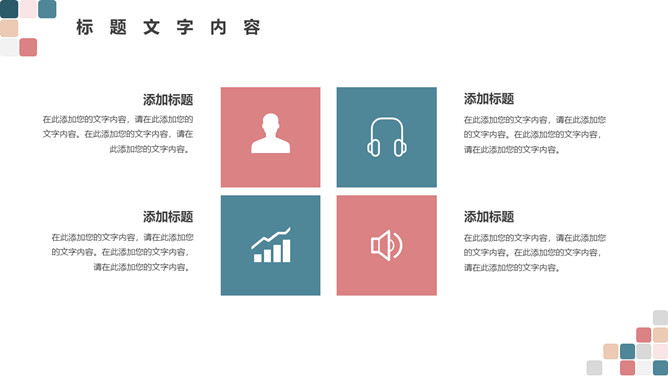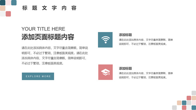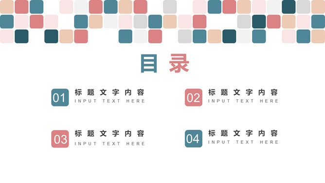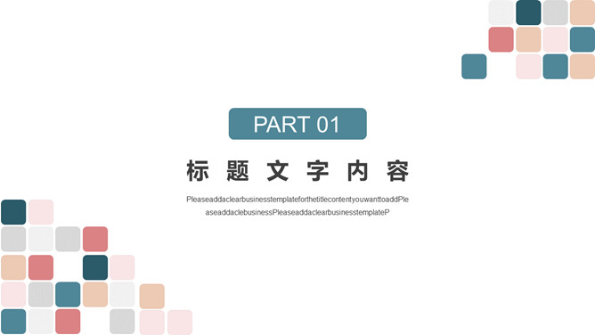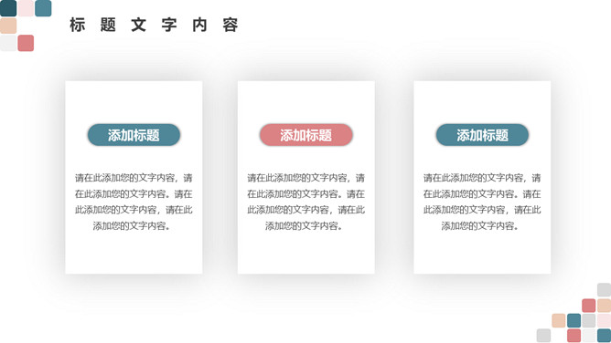 莫兰迪彩色方块通用PPT模板。一套简约通用幻灯片模板,莫兰迪色系彩色小方块背景装饰。
