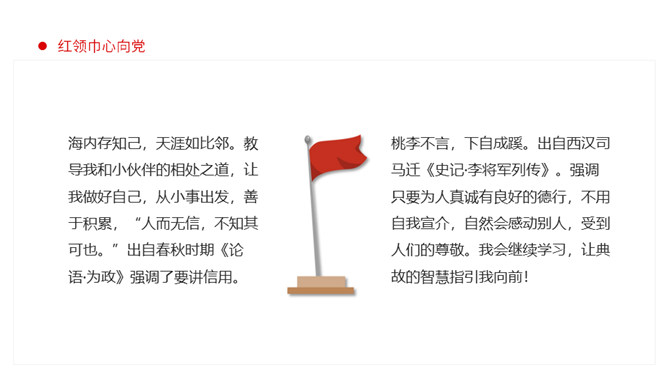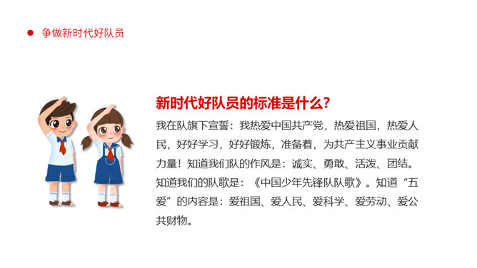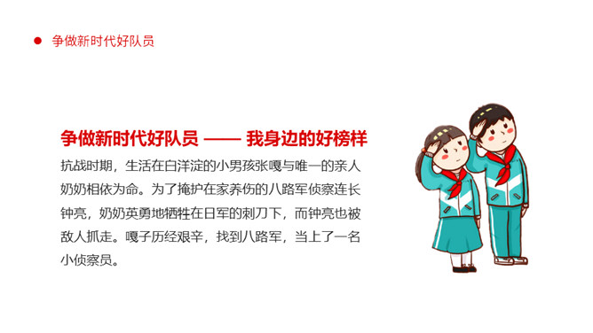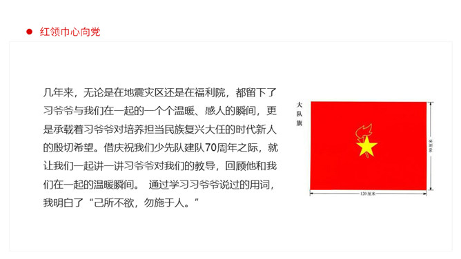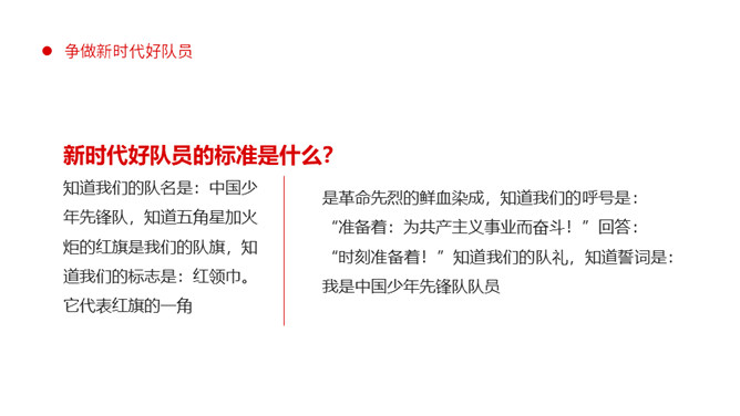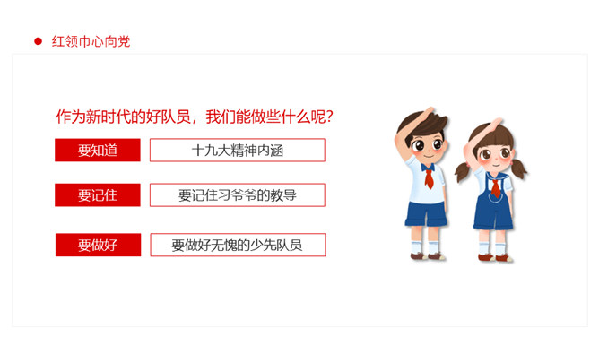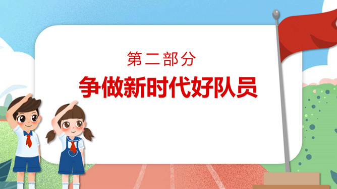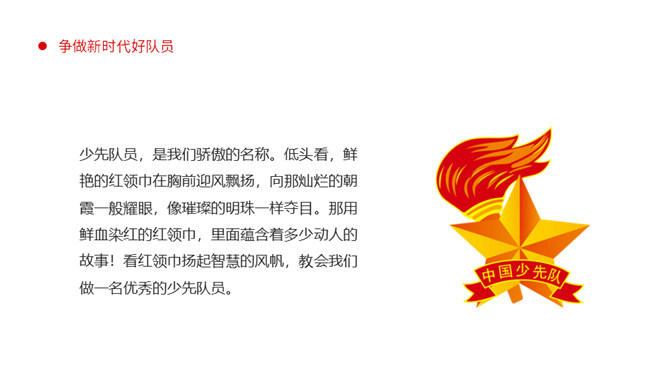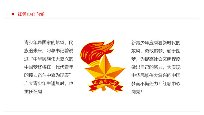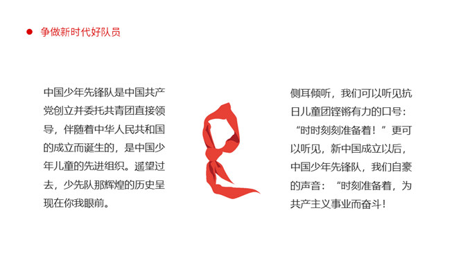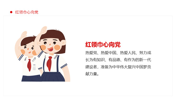 红领巾心向党争做好队员PPT模板。包括红领巾心向党、争做新时代好队员、红领巾知识竞答等内容。