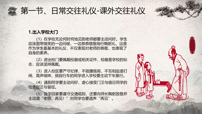 中小学生礼仪知识班会PPT模板。内容包括礼仪的内涵及实质、为什么要学礼仪、学生礼仪知多少?