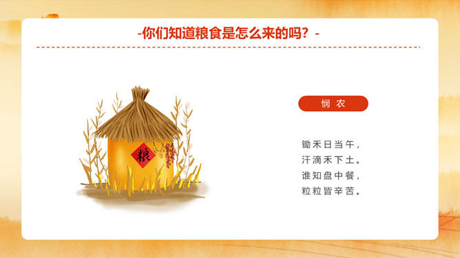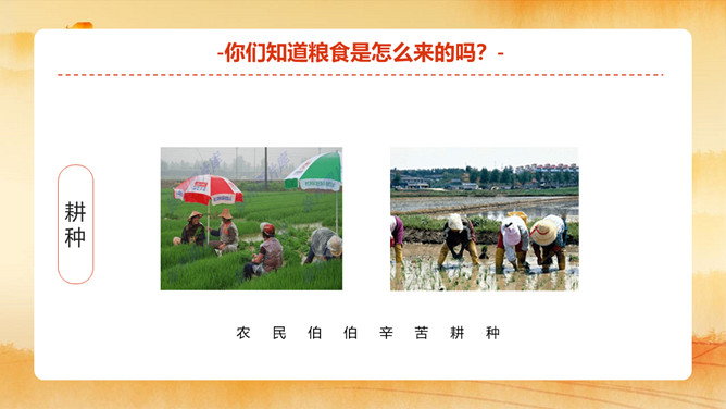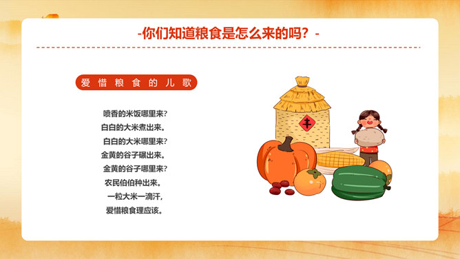 节约粮食主题班会PPT模板。小小一粒米,我们要珍惜。内容包括粮食知多少、粮食怎么来的、你浪费粮食了吗?
