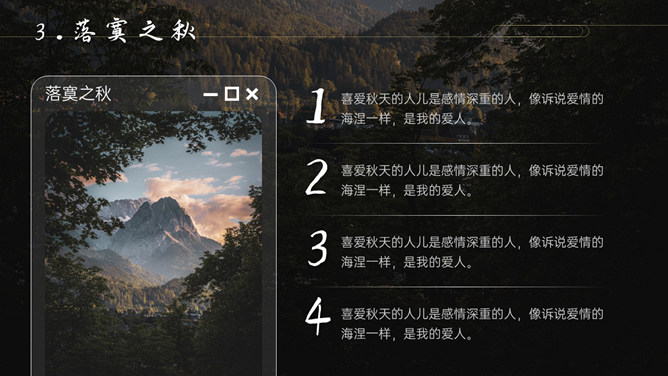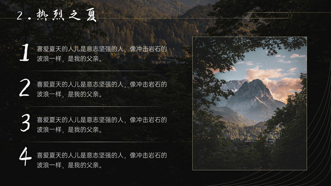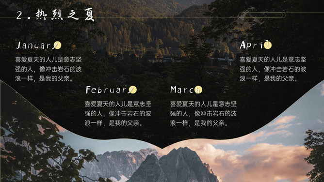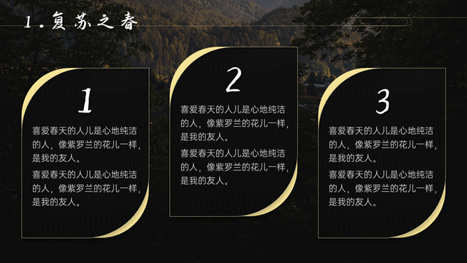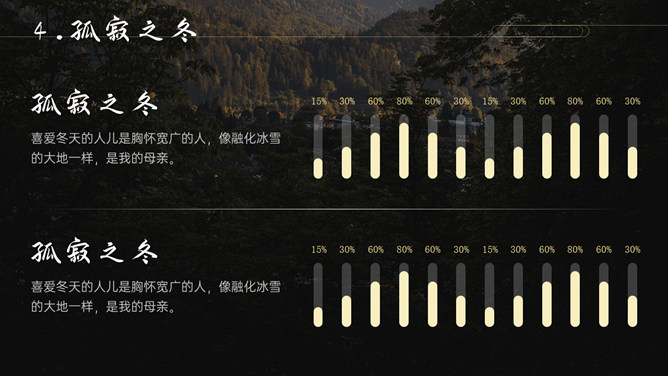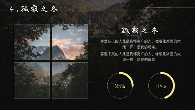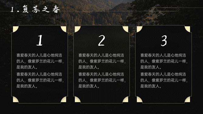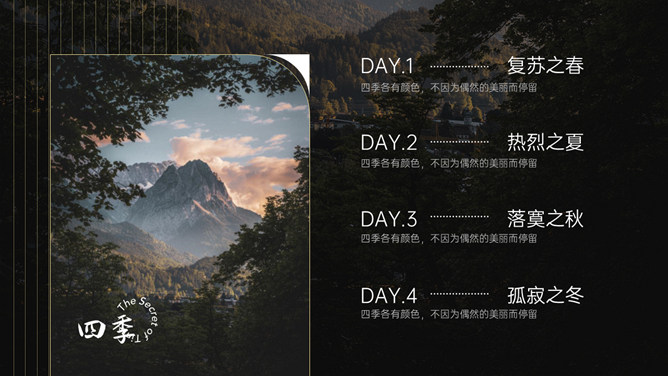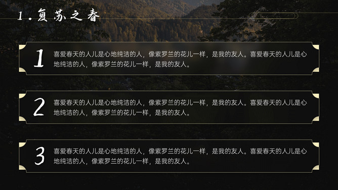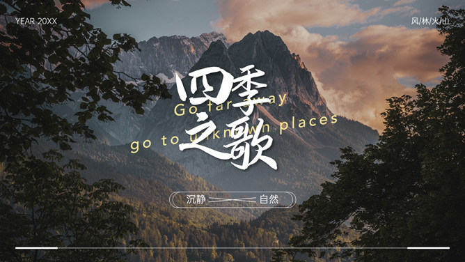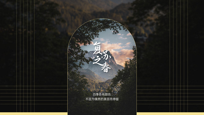 空谷幽兰沉静自然PPT模板。一套自然风景类模板,幽静的山谷背景,多种图片排版,很有设计感。