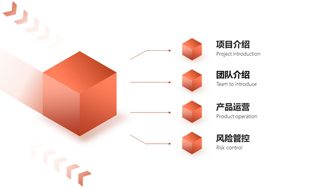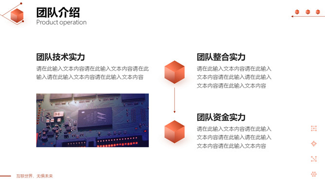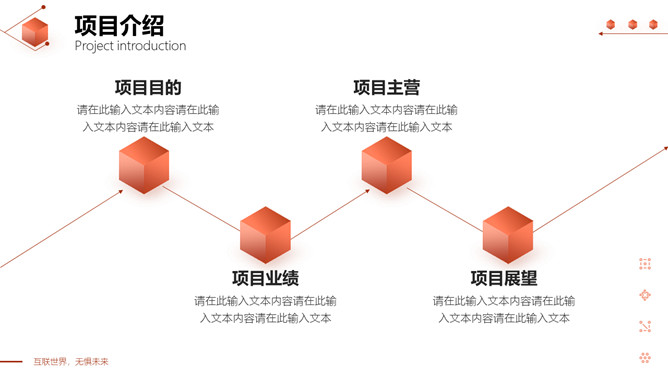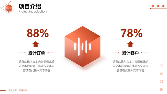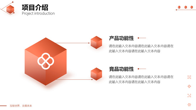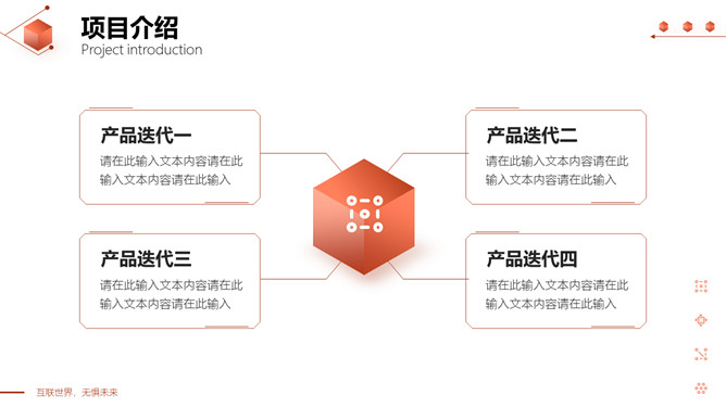 立方体科技风网络技术项目介绍PPT模板。一套互联网科技产品项目介绍模板,红色互联立体方元素设计。