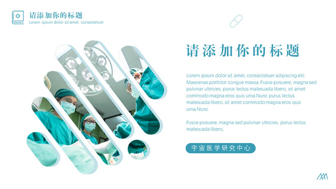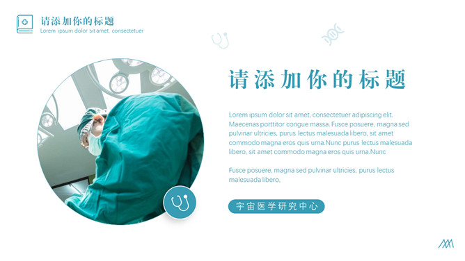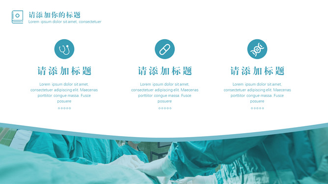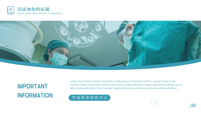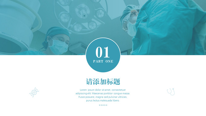 手术外科医学医疗汇报PPT模板。一套医学医疗主题模板,医生手术室背景,适合手术外科相关培训汇报相关内容。