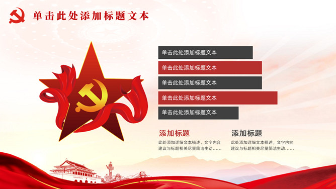 弘扬长征精神党建工作总结PPT模板。一套党建工作汇报、宣传弘扬长征精神通用模板,简约大气,红黑配色。
