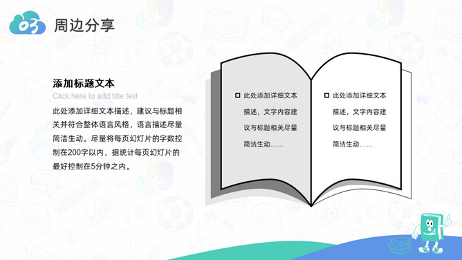 卡通小学生读书分享活动PPT模板。一套小学生读书分享会活动模板,可爱卡通设计,简约清新蓝绿配色。