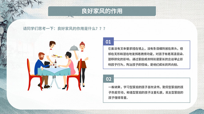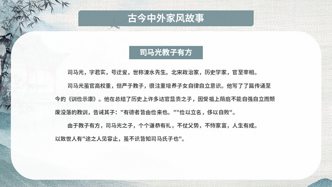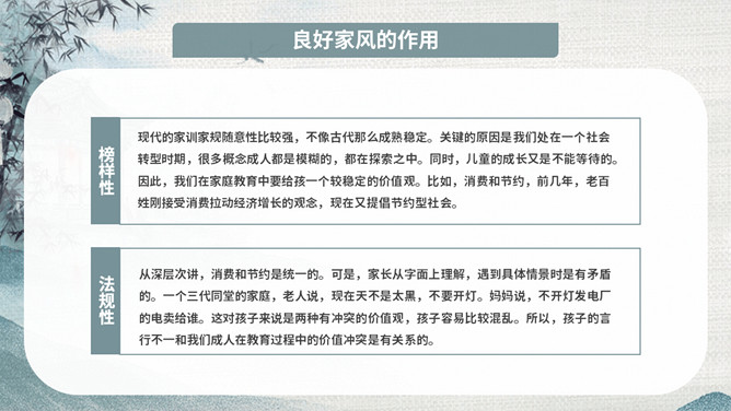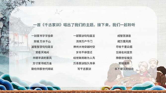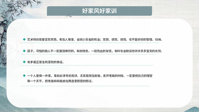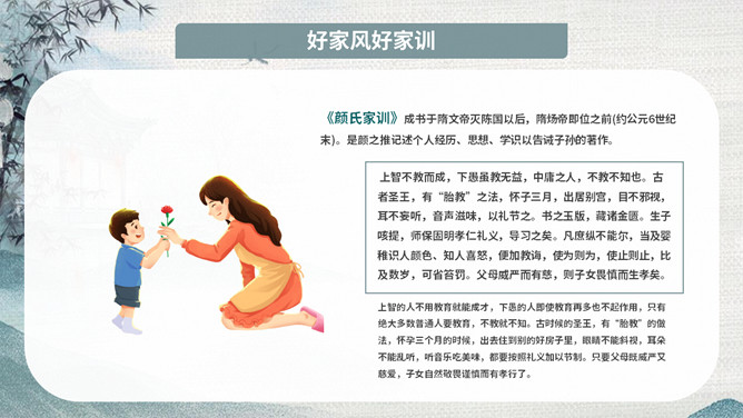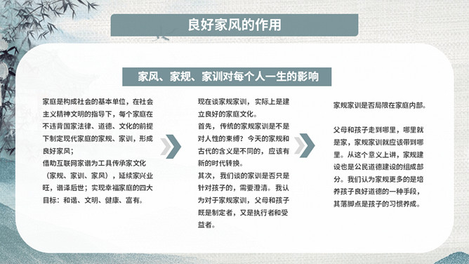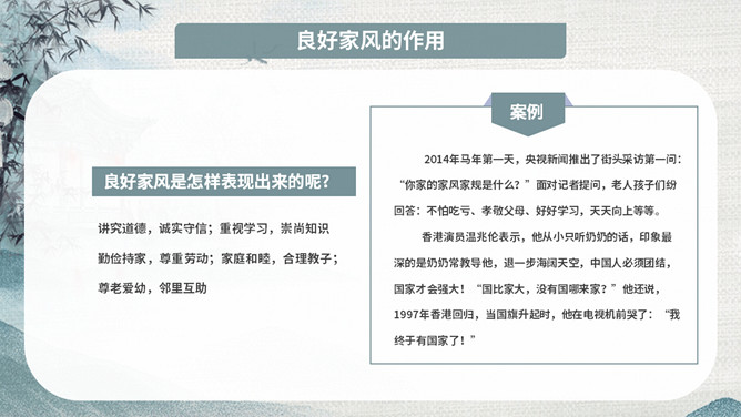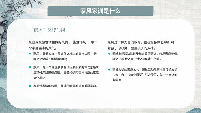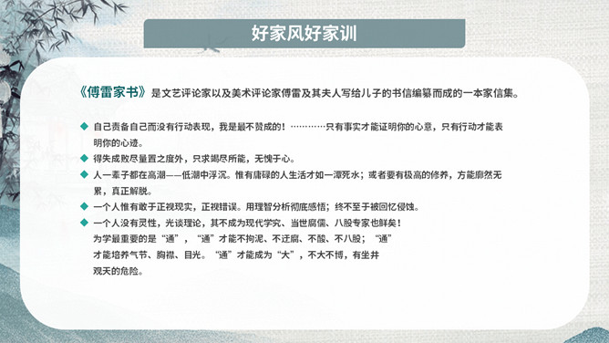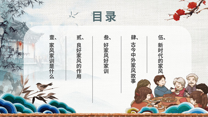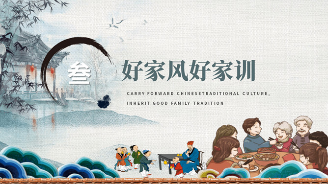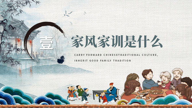 传承好家训培育好家风班会PPT模板。内容包括家风家训是什么、良好家风的作用、好家风好家训、古今中外家风故事、新时代的家风。