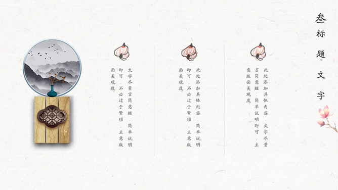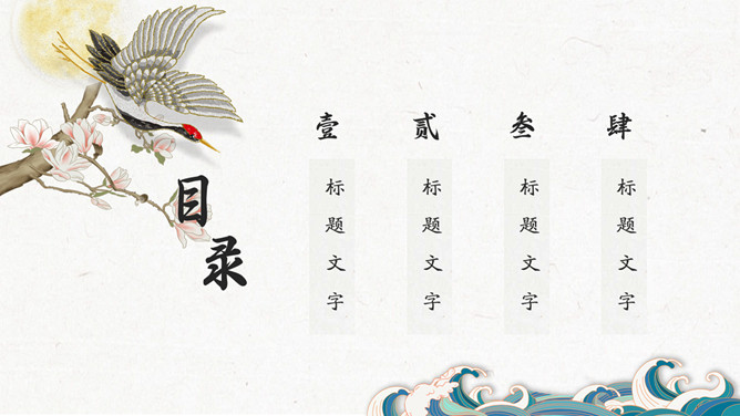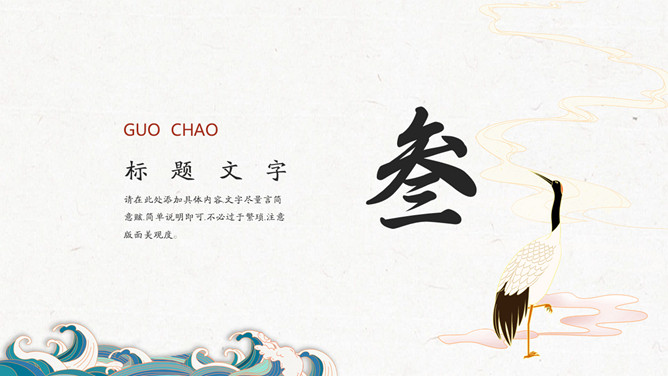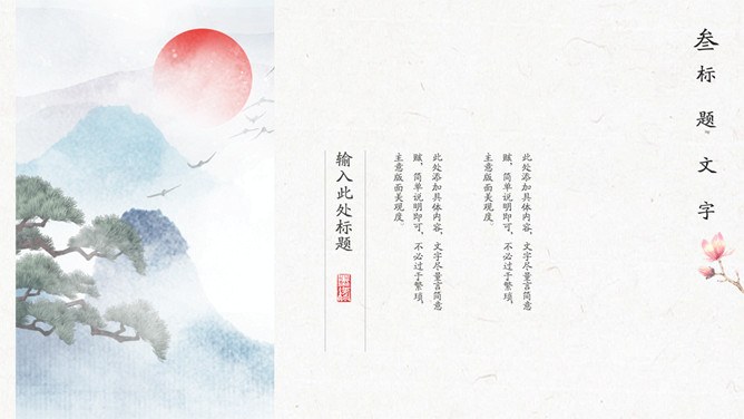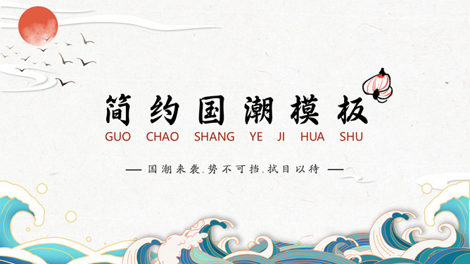简约波浪红日国潮风PPT模板。一套简约中国风模板,新中式国潮风格设计,波浪、红日等元素背景。