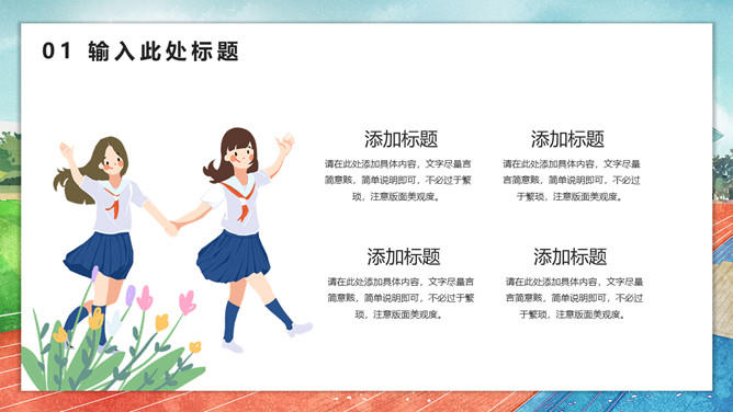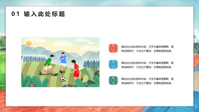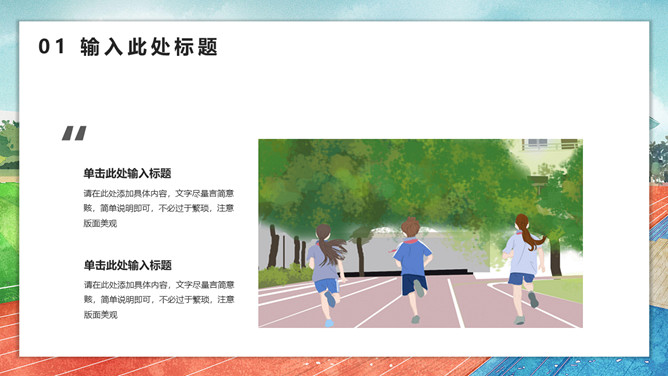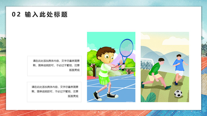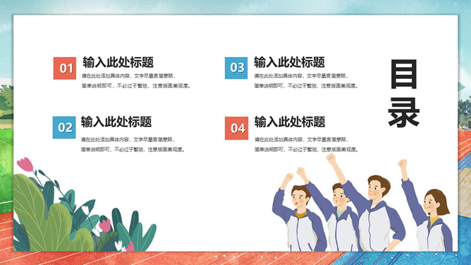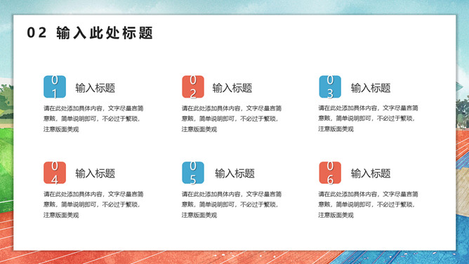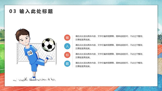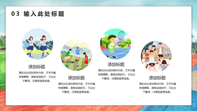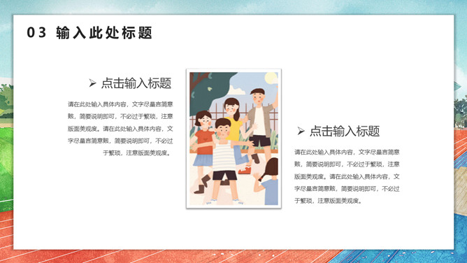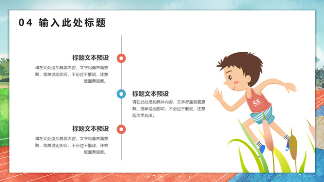 校园运动会体育课件PPT模板。一套中小学校园运动会主题模板,卡通设计风格,也可用体育教学类相关课件。