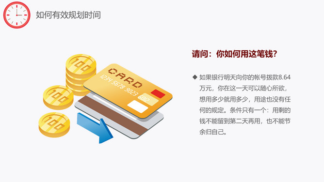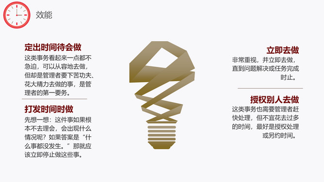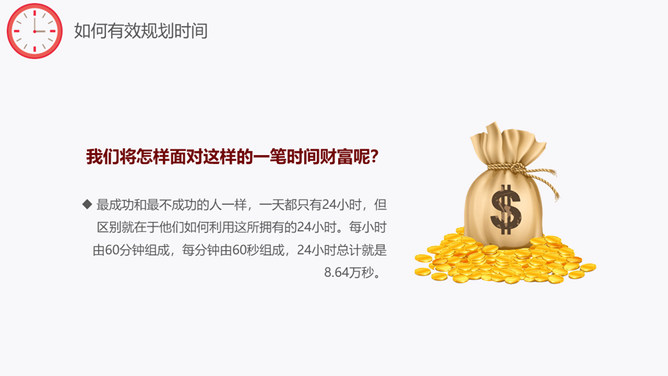 时间规划管理培训课件PPT模板。包括如何有效规划时间、效能、效率、勤恳、时间规划管理步骤等内容。