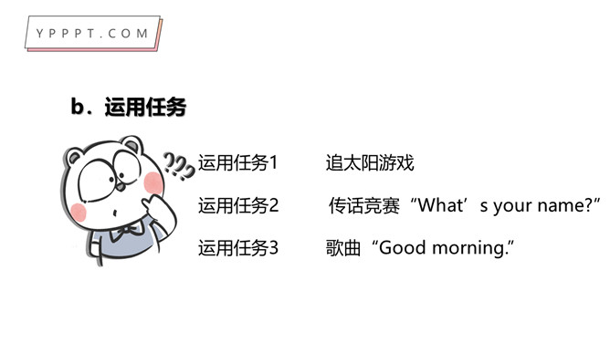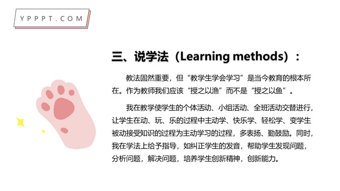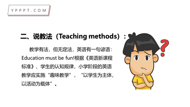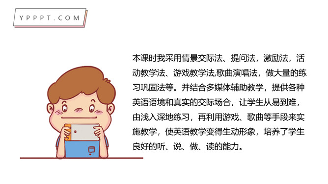 可爱小象英语教学说课课件PPT模板。一套英语教学说课课件模板,可爱小象背景,简洁设计,也可用于其他科目。