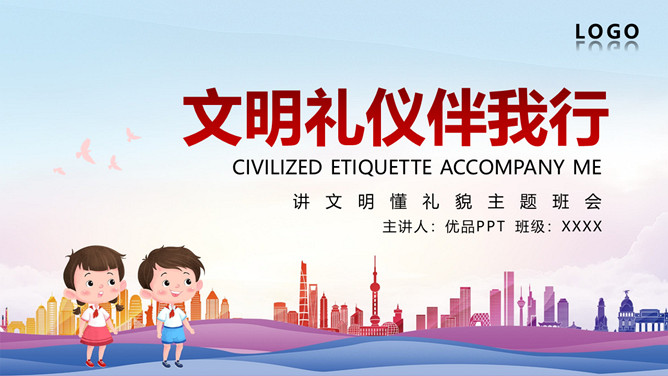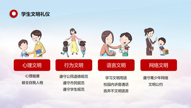 小学生讲文明懂礼貌班会PPT模板。包括什么是文明礼仪、校园礼仪、校园文明规范、校园不文明行为等内容。