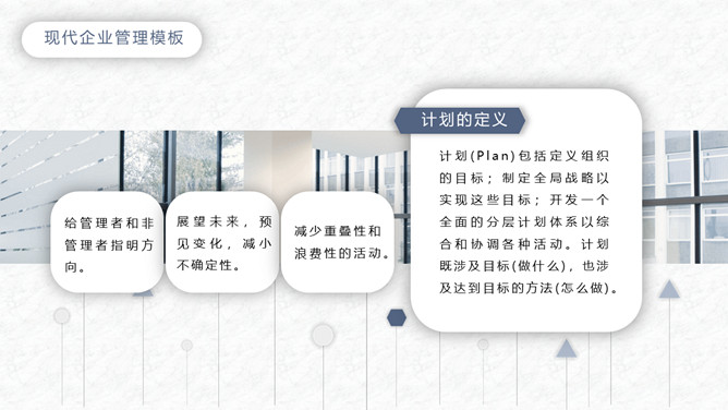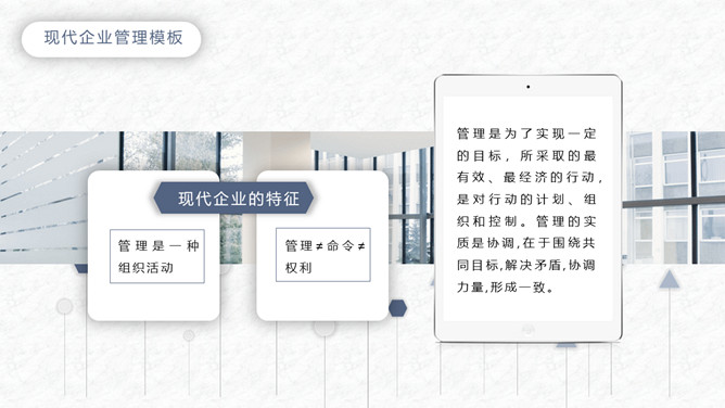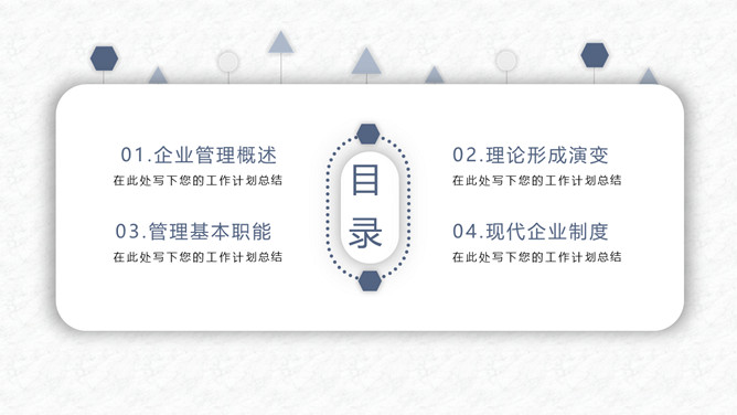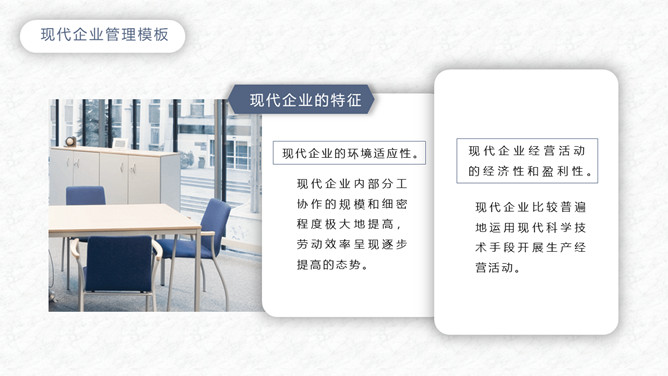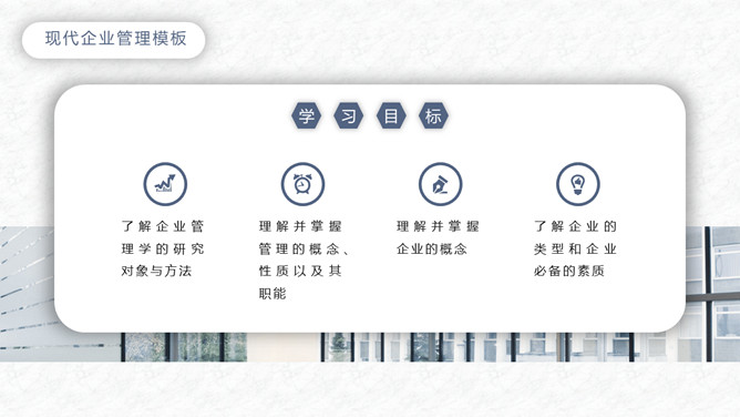 简洁企业管理培训课件PPT模板。一套企业管理培训课件模板,大气蓝灰配色,简约设计,动态播放,通用性强。