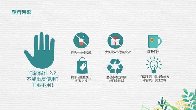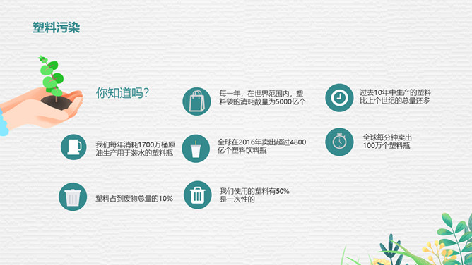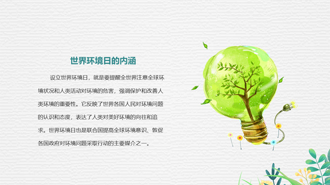 手捧地球世界环境日PPT模板。内容包括世界环境日简介、世界环境问题、破坏环境的行为、环保大家来参与。