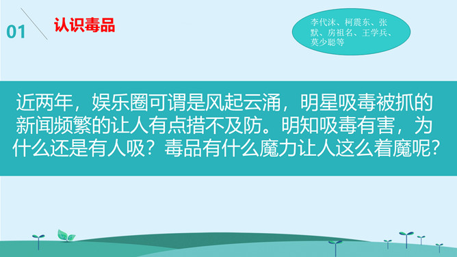 警惕诱惑陷阱班会PPT模板。近两年,娱乐圈可谓是风起云涌,明星被抓的新闻频繁的让人有点措不及防。明知有害,为什么还是有人吸?有什么魔力让人这么着魔呢?