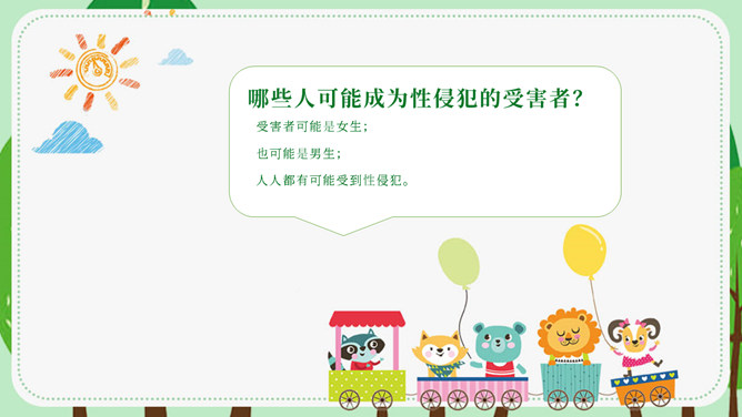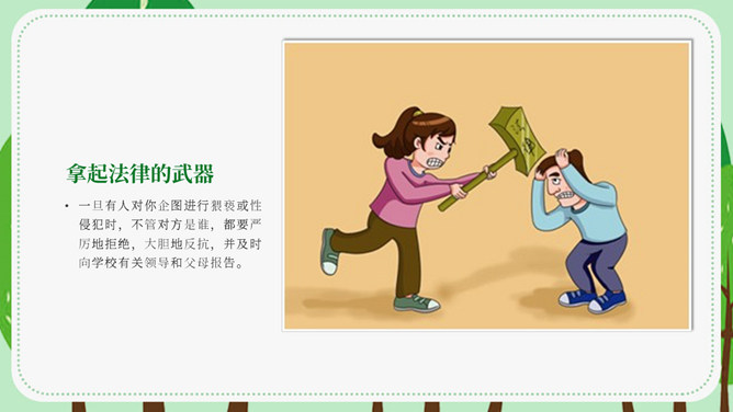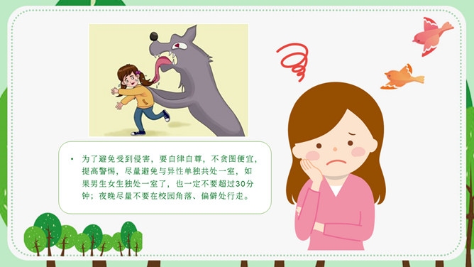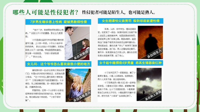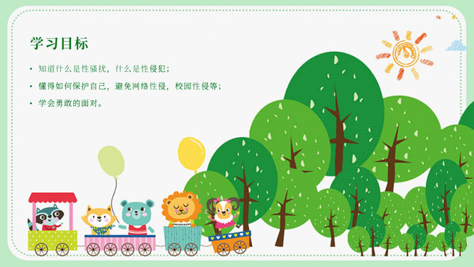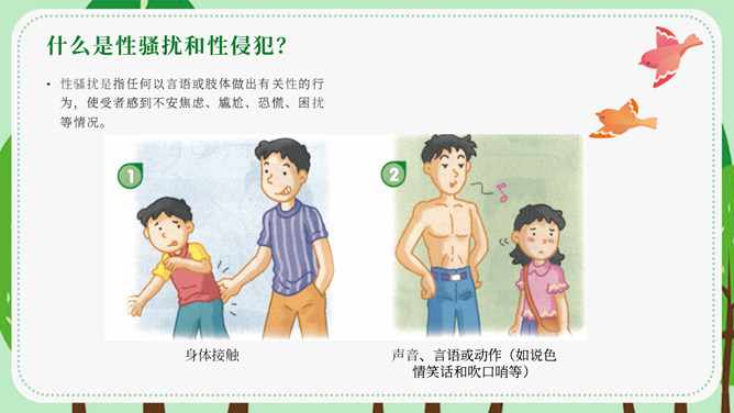 避免受性侵犯班会PPT模板。学习目标:知道什么是性骚扰,什么是性侵犯;懂得如何保护自己,避免网络性侵,校园性侵等;学会勇敢的面对。
