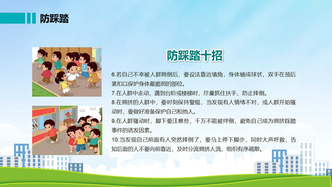 生命安全主题教育班会PPT模板。增强安全意识和安全法制观念,提高面临突发事件的自我防护能力,防止各类安全事故的发生,进一步做好平安校园构建工作。