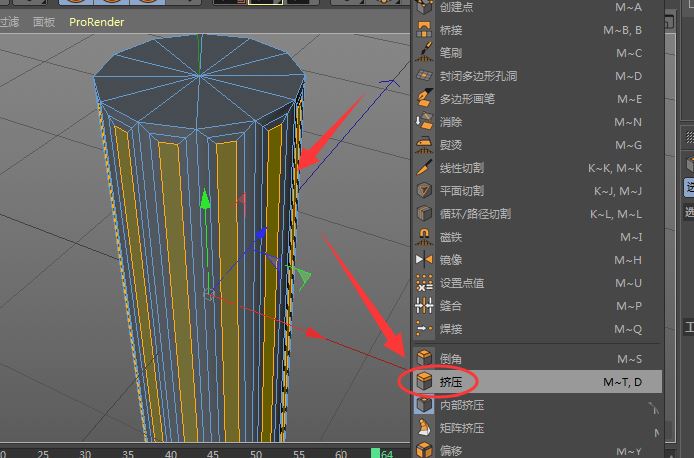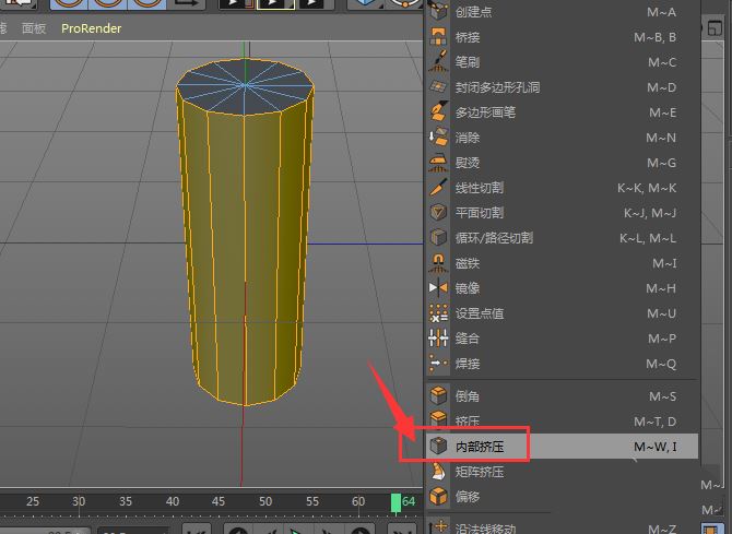 然后再选择挤压属性,向内部做挤压效果,有一点深度就可以了