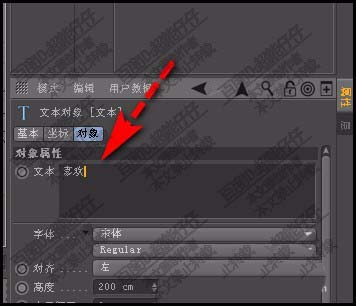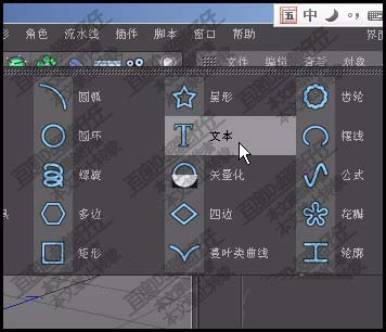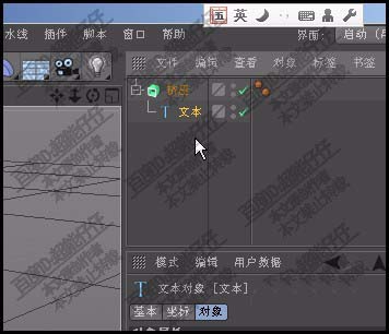1、我们在样条组里,创建一个文本对象。