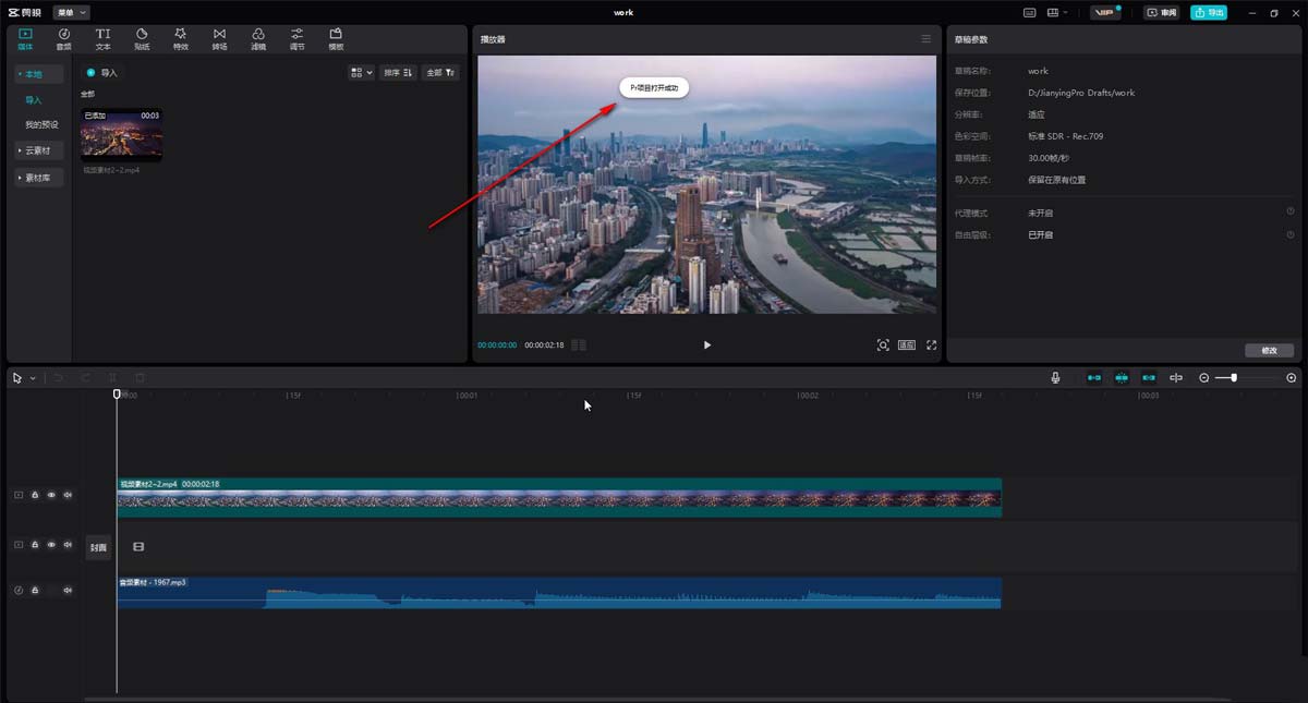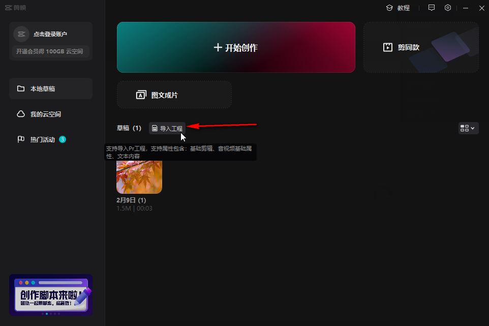 第四步:接着重新打开电脑版剪映,就可以看到“导入工程”按钮了,点击一下,如果没有,记得将剪映更新到最新版;