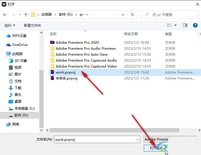 第五步:接着在打开的窗口中浏览找到需要导入的pr工程文件,点击“打开”按钮;