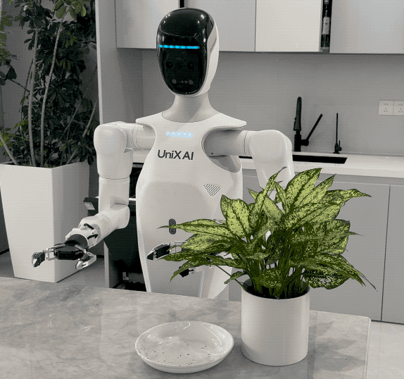 这是一款售价 8.8 万元起的轮式双臂机器人,于 2024 年底正式发布。它身高、臂展接近成年人类,搭载了八自由度的机械臂。