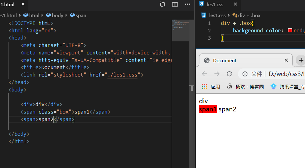 div + .box 意思就是 我要选择 div 的兄弟节点,而且必须是 类名是box 的。