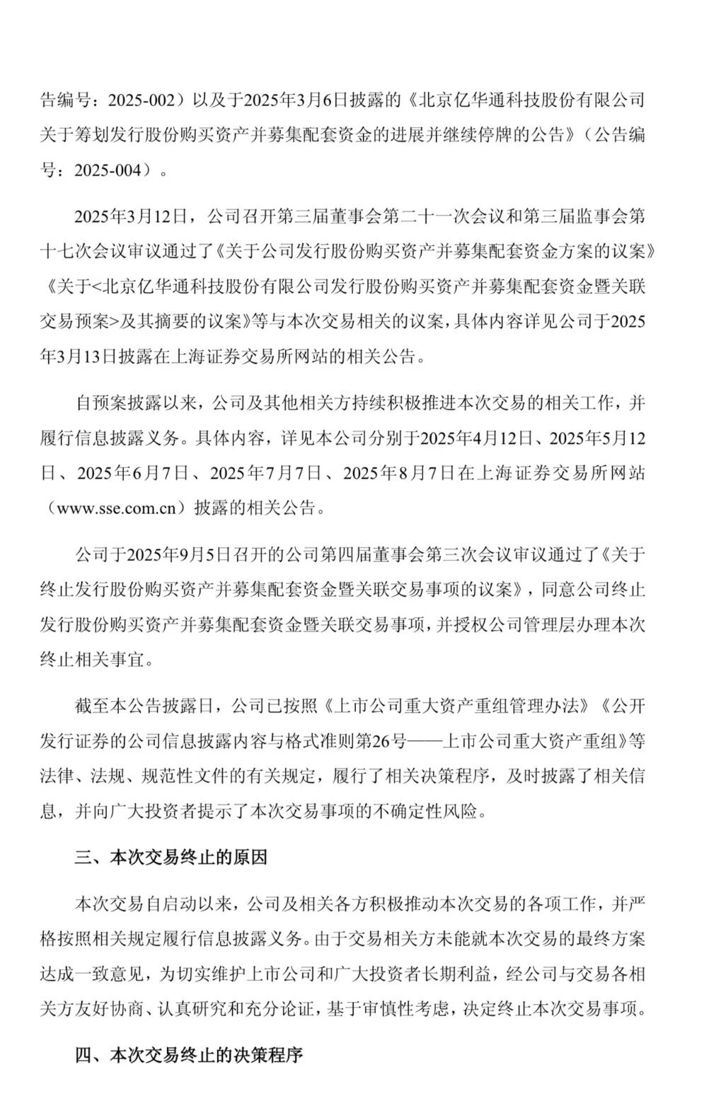 9月5日晚,亿华通发布公告,公司审议通过了《关于终止发行股份购买资产并募集配套资金暨关联交易事项的议案》,同意公司终止发行股份购买资产并募集配套资金暨关联交易事项。公告显示,公司拟通过发行A股购买标的公司的100%股权并募集配套资金,但因交易双方未能达成一致意见,为维护公司和投资者利益,经协商决定终止可能交易。
