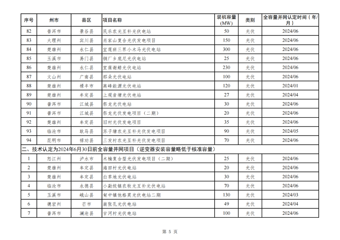 云南省能源局关于印发2024—2025年第一批新能源项目全容量并网时间认定清单的通知