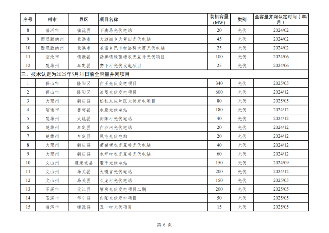 附件:云南省2024—2025年第一批新能源项目全容量并网时间认定清单.xlsx