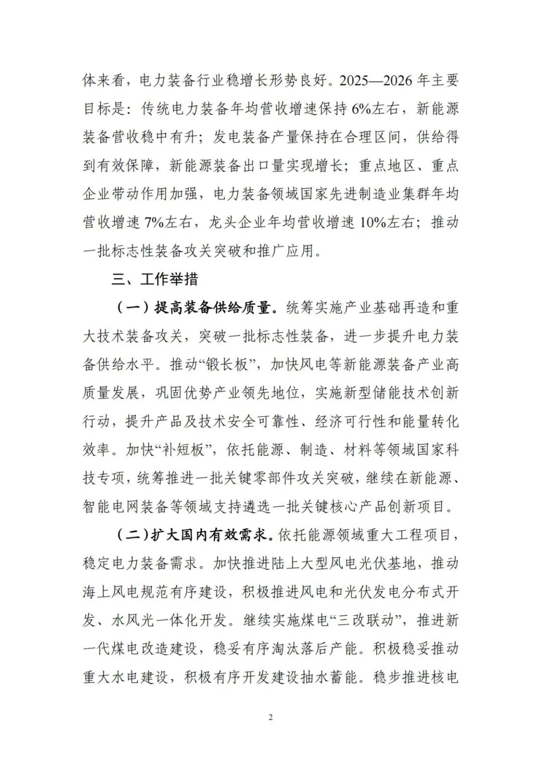 工业和信息化部 市场监管总局 国家能源局关于印发《电力装备行业稳增长工作方案(2025-2026年)》的通知