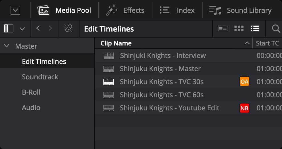 有了全新的时间线锁定功能,您就能更加便捷地和其他剪辑师同时展开协作。这项自动操作可以将时间线锁定到第一位打开它的用户,防止出现两位用户选中同一条时间线的情况,不再需要锁定整个时间线媒体夹。这样一来,多名剪辑师就可以打开同一个媒体夹中的不同时间线了。