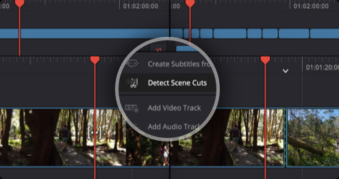 现在可以直接在剪切时间线上使用场景剪切探测。只需前往时间线菜单,点击“探测场景切点”。所选片段的内容将被分析,剪切点会被自动放置在渲染片段的每个新剪辑上。用户可以根据需要修改或移除修剪点。