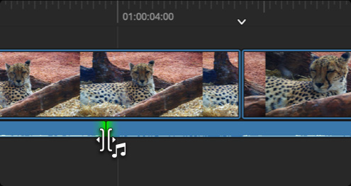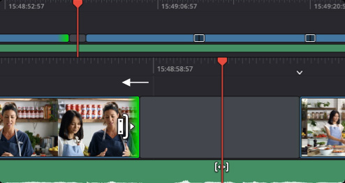 在快编页面上拖动片段的下方部分可单独调整音轨,让观众在看到视频片段之前或之后听到对白。剪辑师可以创意性地将视觉注意力放在场景上,使用音频为对白场景添加趣味性、戏剧性或者紧张感。