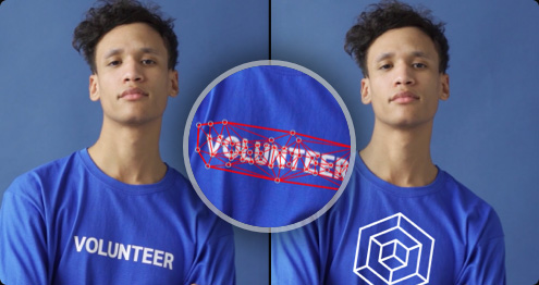 您可以在T恤、旗帜,甚至是人物侧脸等容易发生扭曲变形或者角度变化的物体表面应用图文。表面跟踪器的自定义网格可以跟随纹理表面的动态。采用这一强大的跟踪工具,可应用图文、合成纹身、或甚至遮住徽标!