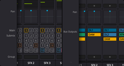 FlexBus是Fairlight的灵活音频总线处理和指派系统,专为管理大量轨道设计,且具备广泛的插件处理能力、强大的同步和多项目交付功能。如今您只要轻轻一点,就可以快速将老式固定总线Fairlight项目转换成FlexBus。
