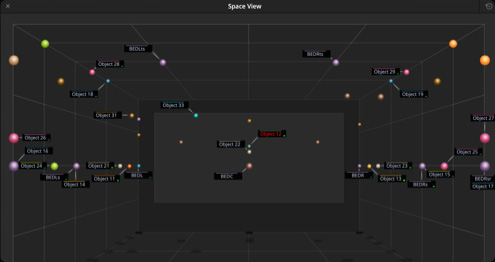 DaVinci Resolve原生支持新型工业音频标准格式,包括沉浸式音频格式,诸如杜比全景声、Auro 3D、MPEG-H、NHK 22.2和SMPTE。空间方位视图可以实时显示所有混音对象的情况,直观显示它们在空间中的位置,以及它们在3D空间中和其他物体的位置关系。