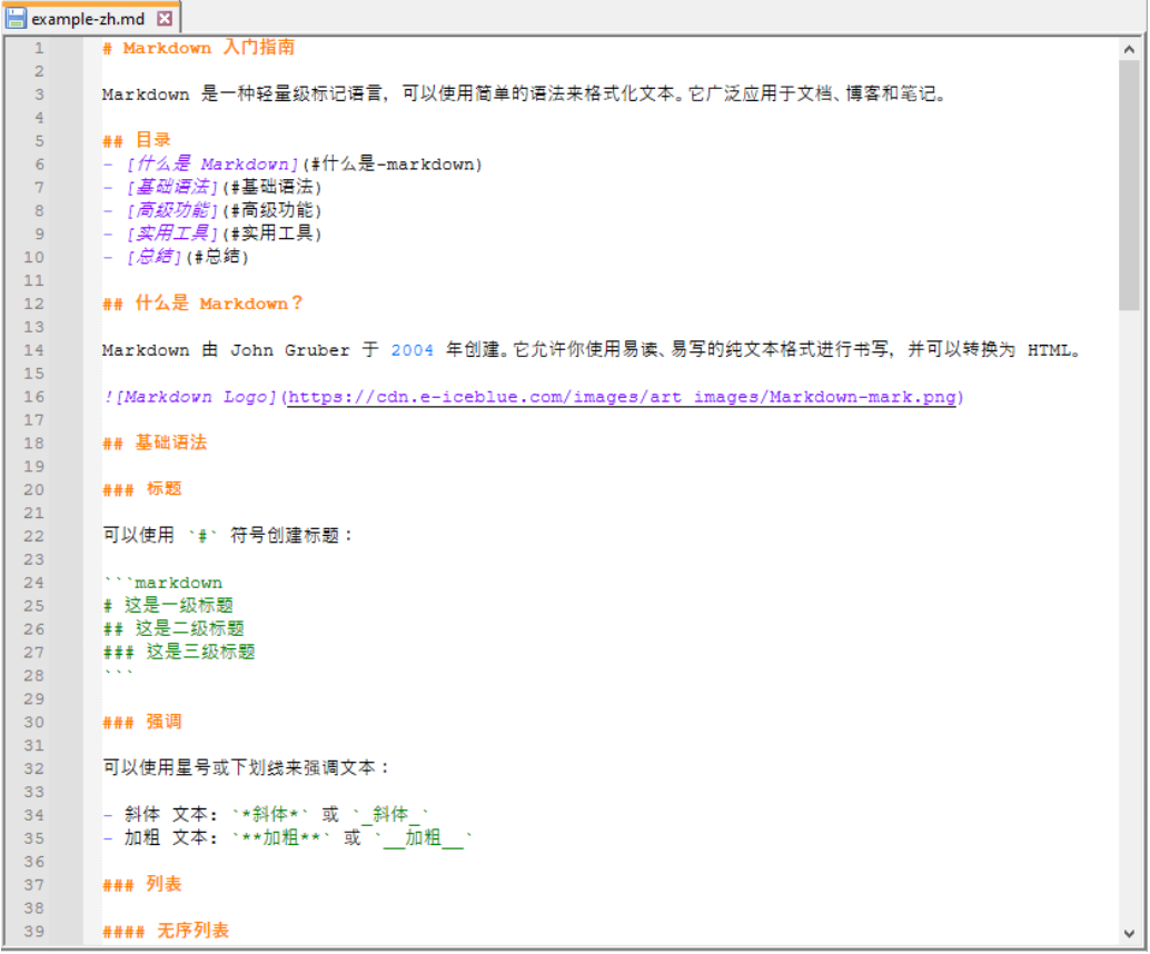 接下来,创建一个示例 Markdown 文件,例如 example-zh.md,作为转换的对象。