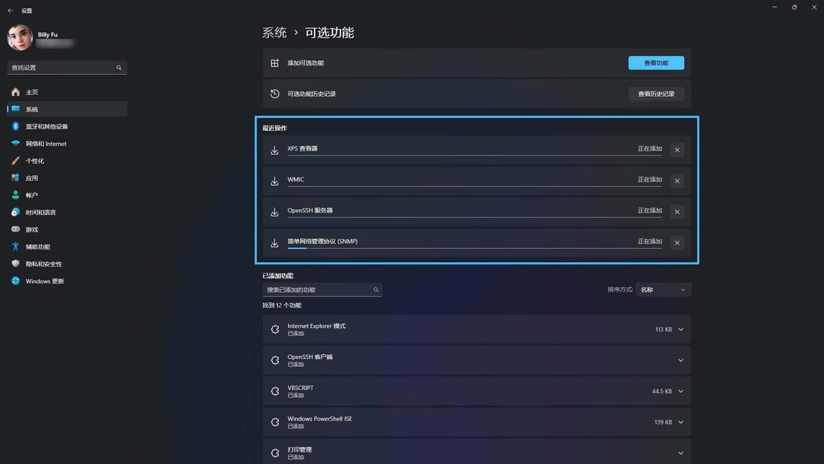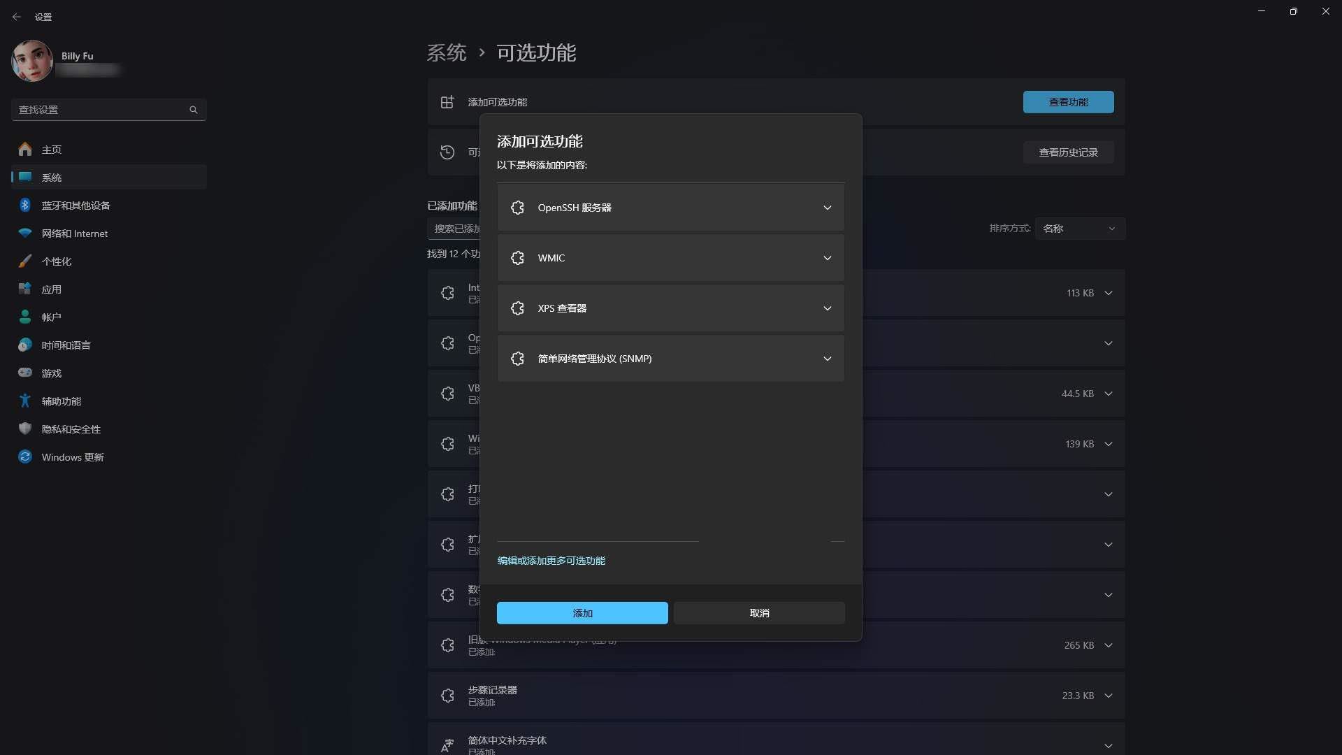 这些功能被称为「可选功能」,你可以根据实际需求选择性地安装和启用。例如: