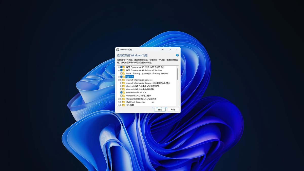 2、在功能列表中,勾选或取消特定的功能,然后点击「确定」。Windows 11 会自动安装或移除所选功能。