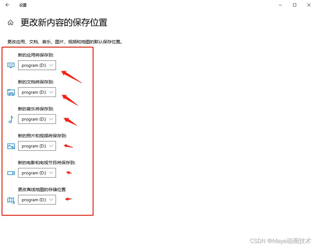 点击左侧存储:点击右侧 更改新内容的保存位置: