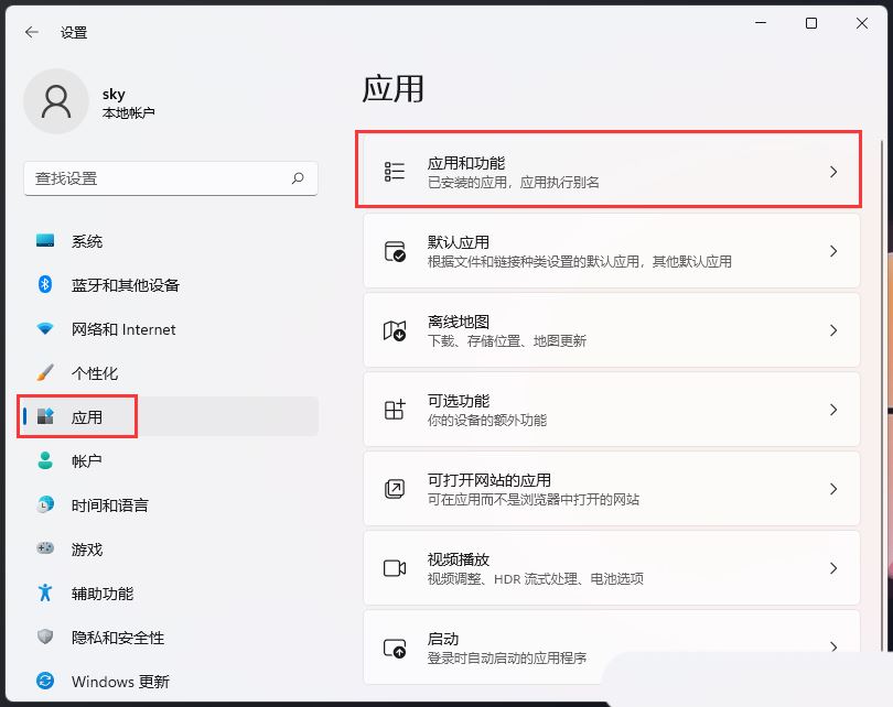 3、Windows 设置窗口,左侧边栏点击应用,右侧点击【应用和功能(已安装的应用,应用执行别名)】;