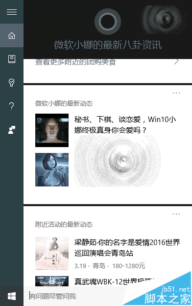使用很简单,在搜索栏或圆环搜索按钮单击,然后就可以显示Cortana界面。此时可以直接搜索想要的内容,也可以根据小娜给出的内容来查看。