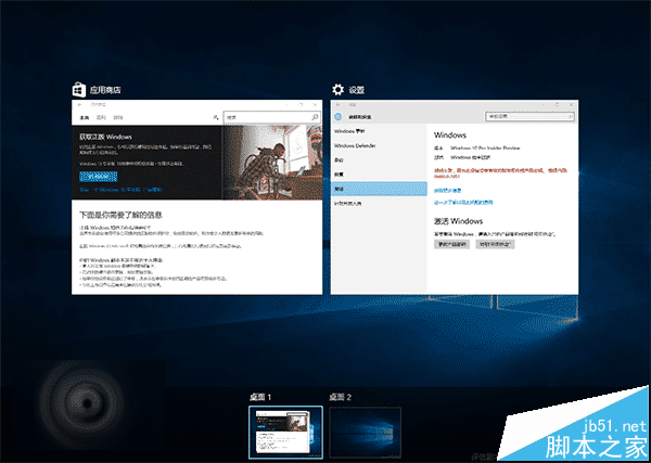 虚拟桌面是Win10新增的功能之一,可以为多任务用户提供任务分类的功能,让工作清晰有条理。点击Cortana搜索栏旁边的“任务视图”按钮就可以进入该功能。此时点击右下角“新建桌面”(如下图)就可以创建多个虚拟桌面,或者点击屏幕中间的任务缩略图就可以切换前台任务。