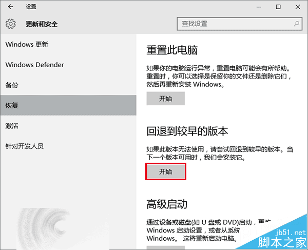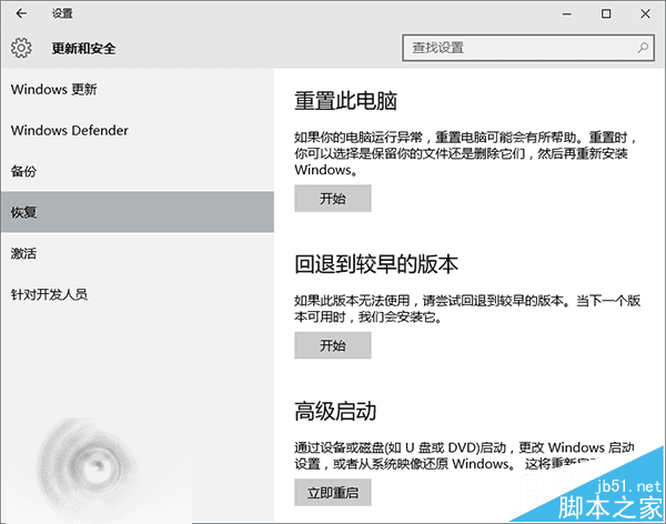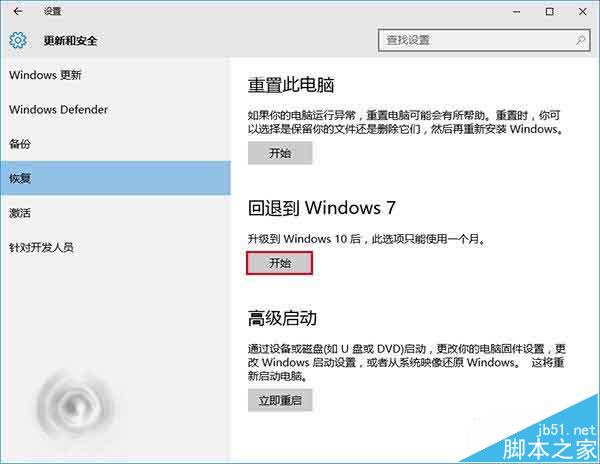 在升级安装Win10的一个月内,你可以“毫发无损”地回退到Win7/Win8.1系统,只要你不自己破坏Windows.old文件夹就行。操作很简单,在设置→更新和安全→恢复→回退至Windows7/Windows8.1中,按照向导操作就可以完成。