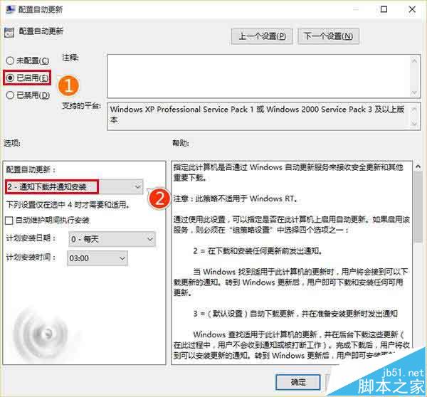 在Win10专业版以上的系统中,用户可以通过组策略来设置手动下载和安装更新的方式,在Cortana搜索栏中中输入“组策略”后按回车键,找到计算机配置→管理模板→Windows组件→Windows更新,按照上图的方法进行设置即可。Win10家庭版用户则需要通过手动开关更新服务的方式来控制更新过程。