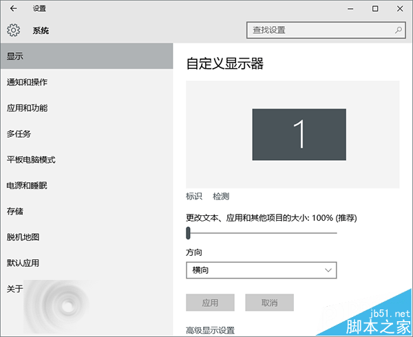 Win10的默认显示效果是为大多数用户提供的,然而某些身体不方便,例如视力欠佳的用户可能在这种模式下不能获得良好的使用体验。为了让这部分用户也能正常使用Win10,微软提供了显示效果自定义选项,在开始→设置→系统→显示中,可以更改文本、应用和其他项目的大小。可调节范围有4个档次,分别为100%(默认)、125%、150%和175%。本调节即时生效,因此显卡不强大的用户可能会出现异常显示效果,此时无需着急,只需给电脑一些反应时间即可。