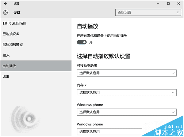自动播放功能本来是为了方便用户的,但由于这项功能有可能涉及隐私泄露,因此多年以来基本上都被列为首要关闭的对象之一。在Win10中,想要关闭自动播放也很简单,而且可以被关闭的项目都被列在一起,管理很方便。只需在设置→设备→自动播放中,对于需要关闭的项目进行设定即可。